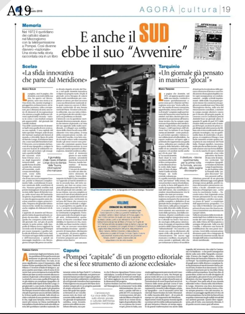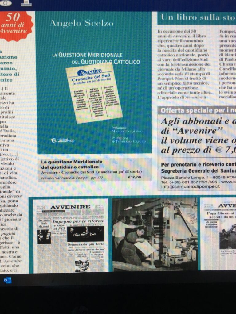 La pagina di Avvenire dedicata all’uscita del libro di Angelo Scelzo sull’edizione Sud