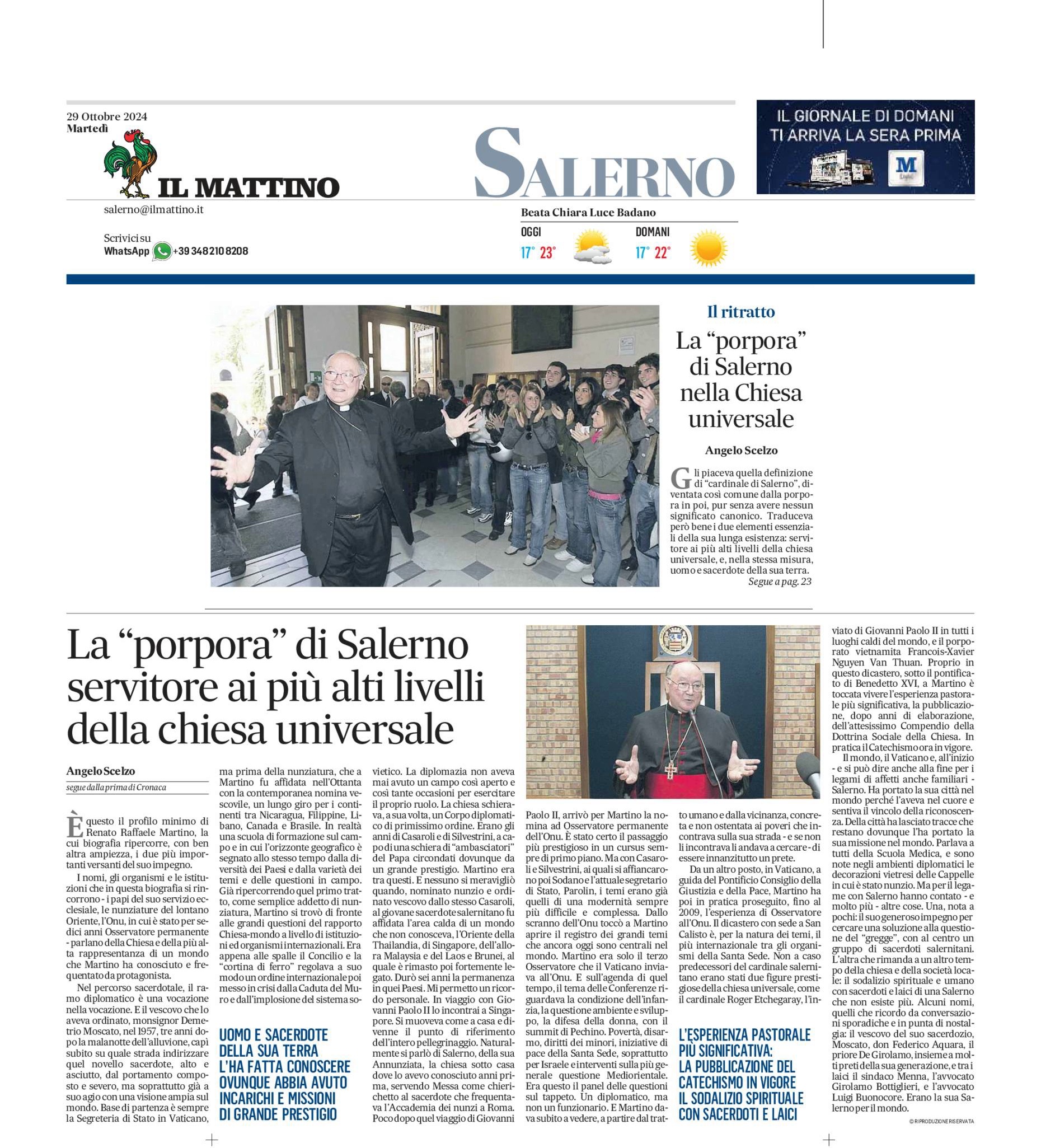 La “porpora” di Salerno, servitore ai più alti livelli della Chiesa universale