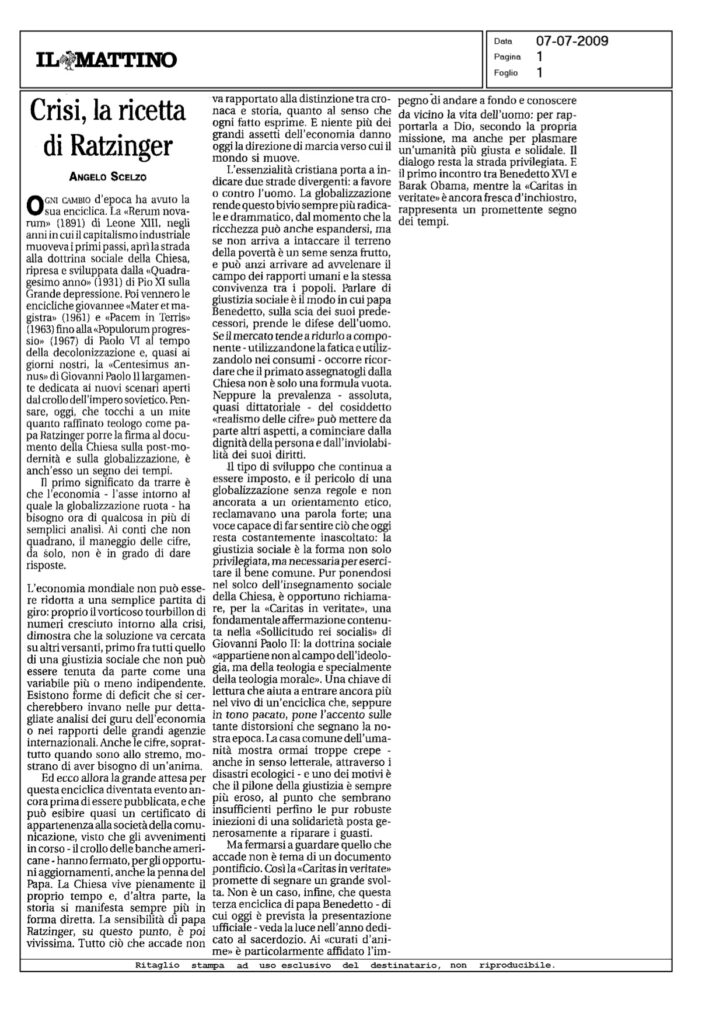 crisi, la ricetta di ratzinger