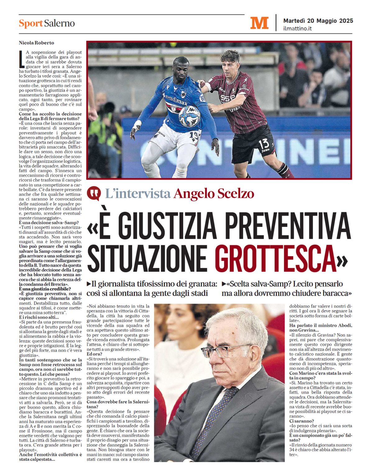 “E’ giustizia preventiva, situazione grottesca” (Intervista a Nicola Roberto de “Il Mattino” su rinvio playout Salernitana)