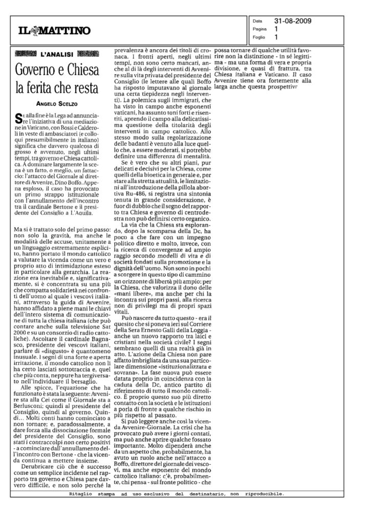 Governo e Chiesa, la ferita che resta