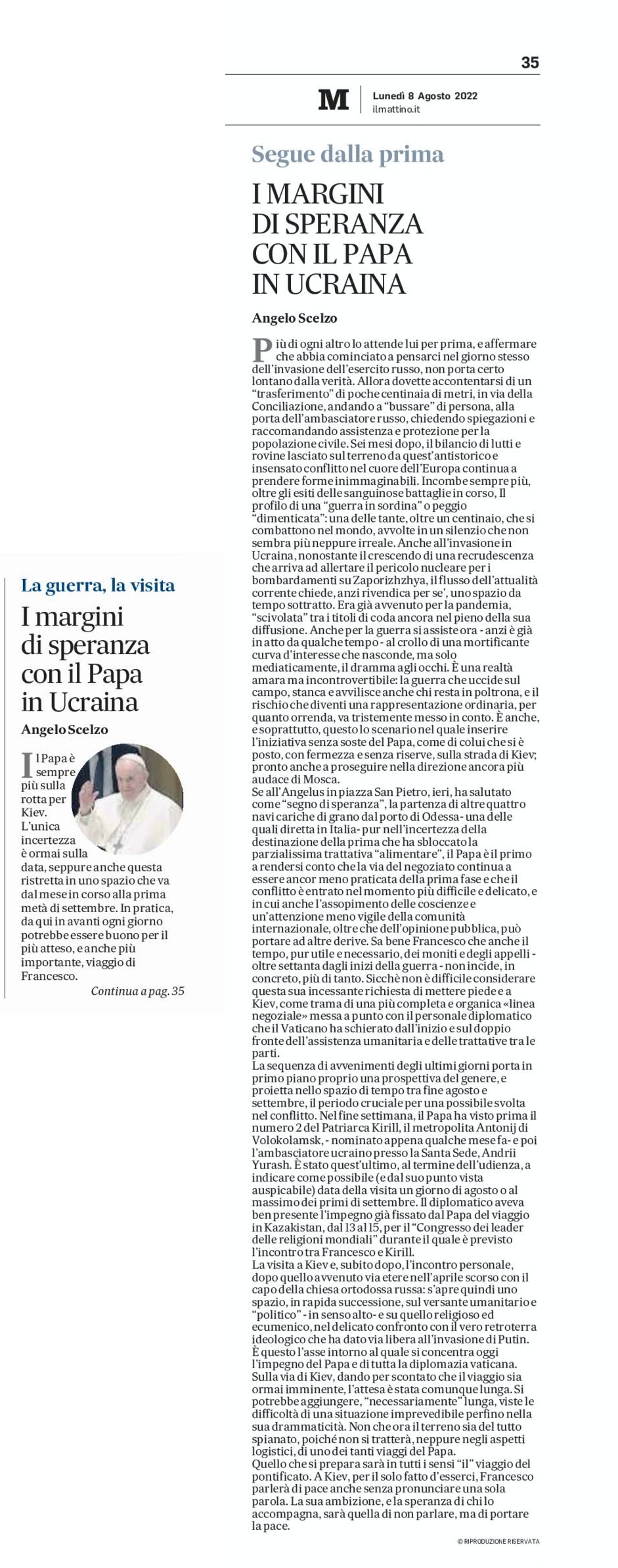 I margini di speranza con il Papa in Ucraina