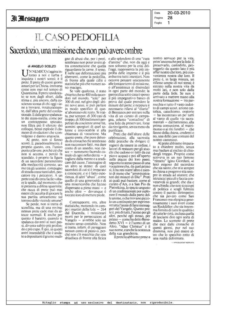 Il caso pedofilia. Sacerdozio, una missione che non può avere ombre.