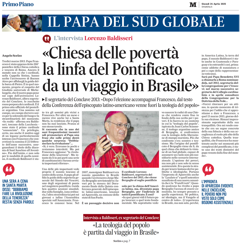 “La Chiesa della povertà. La linfa del Pontificato da un viaggio in Brasile”. Intervista al Cardinale Lorenzo Baldisseri