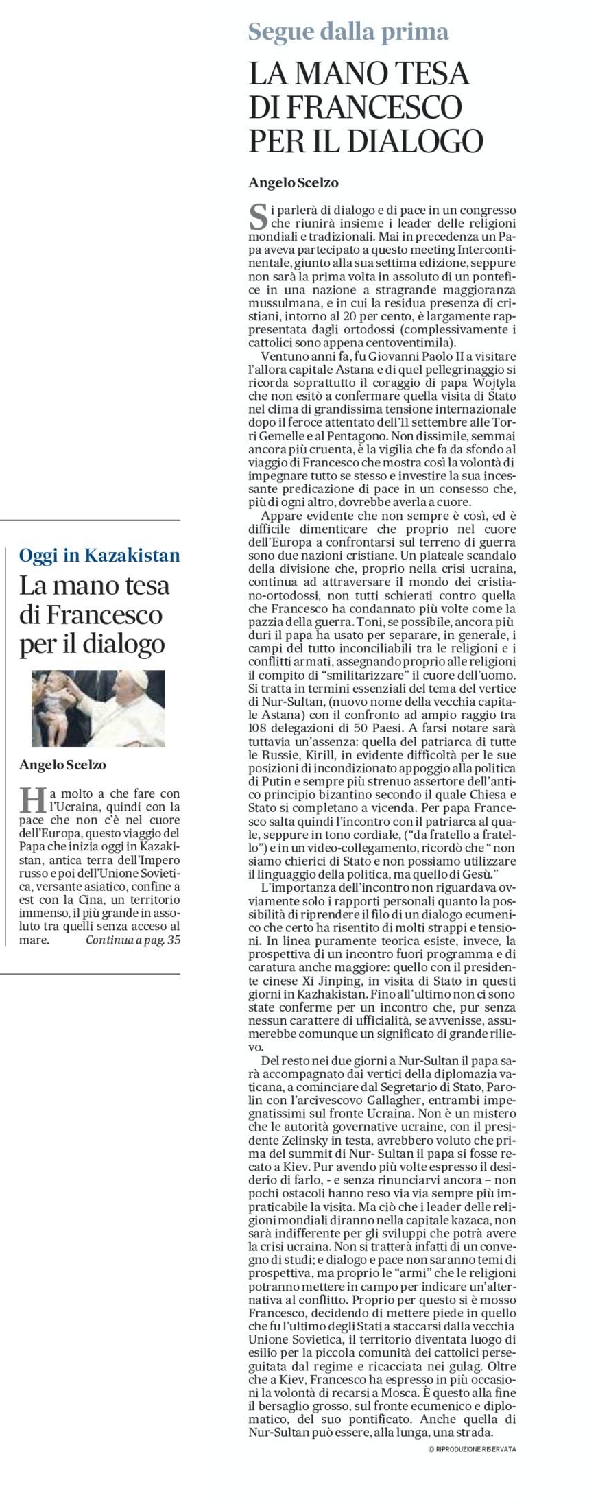 Oggi il Papa in Kazakistan