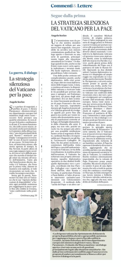 La strategia silenziosa del Vaticano per la pace