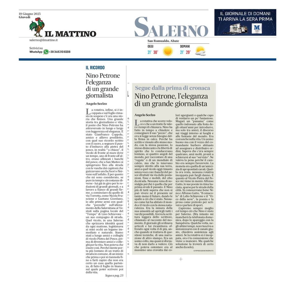 Nino Petrone, l’eleganza di un grande giornalista