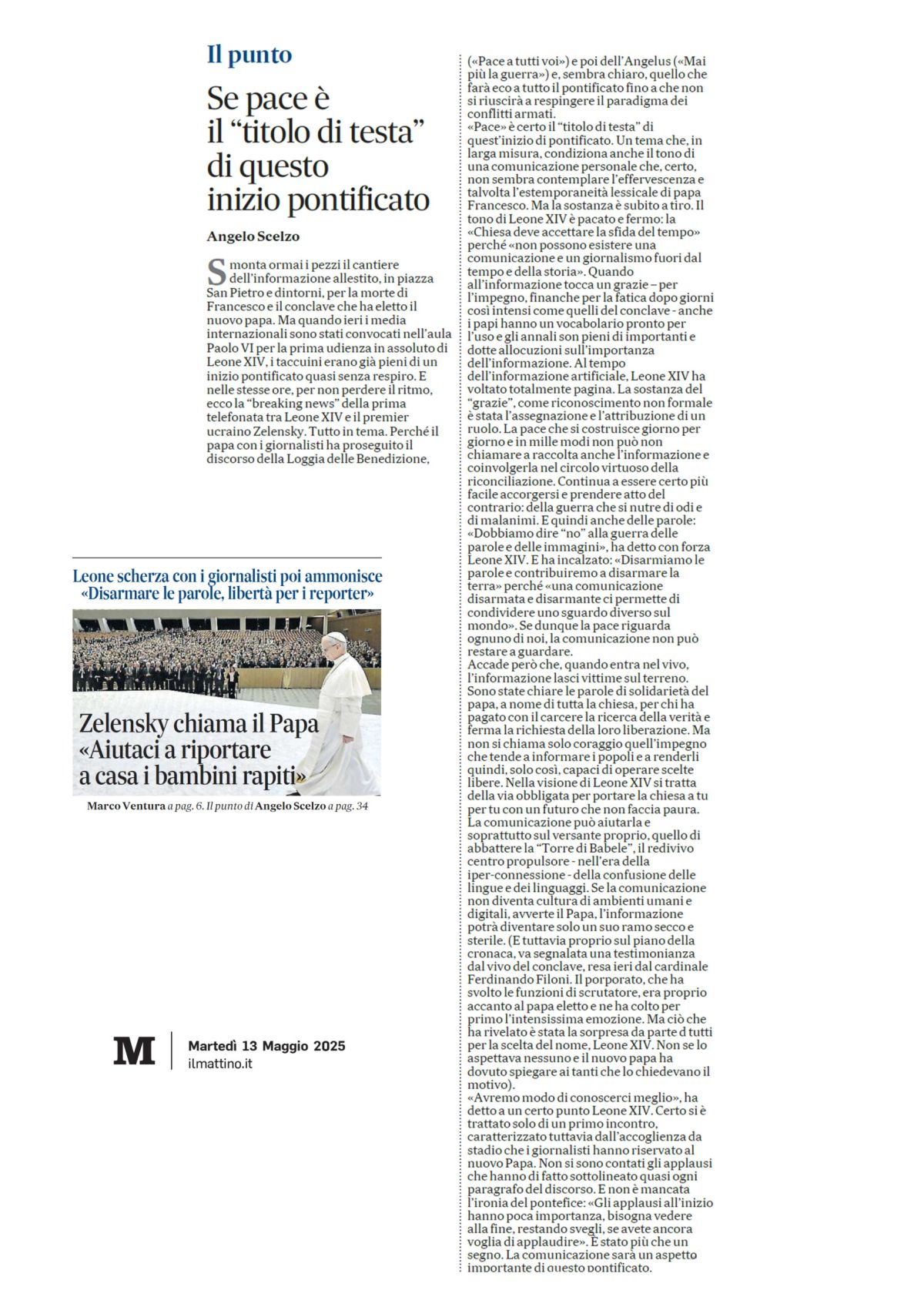Se la pace è il “titolo di testa” di questo inizio pontificato