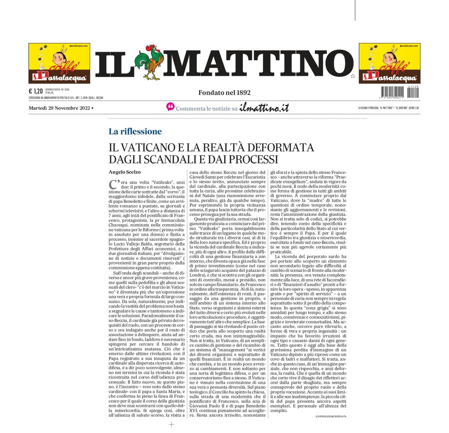 Il Vaticano e la realtà deformata dagli scandali e dai processi Scritto da Angelo Scelzo il 29/11/2022. Pubblicato in Il Mattino. Nessun commento su Il Vaticano e la realtà deformata dagli scandali e dai processi Continua a leggere