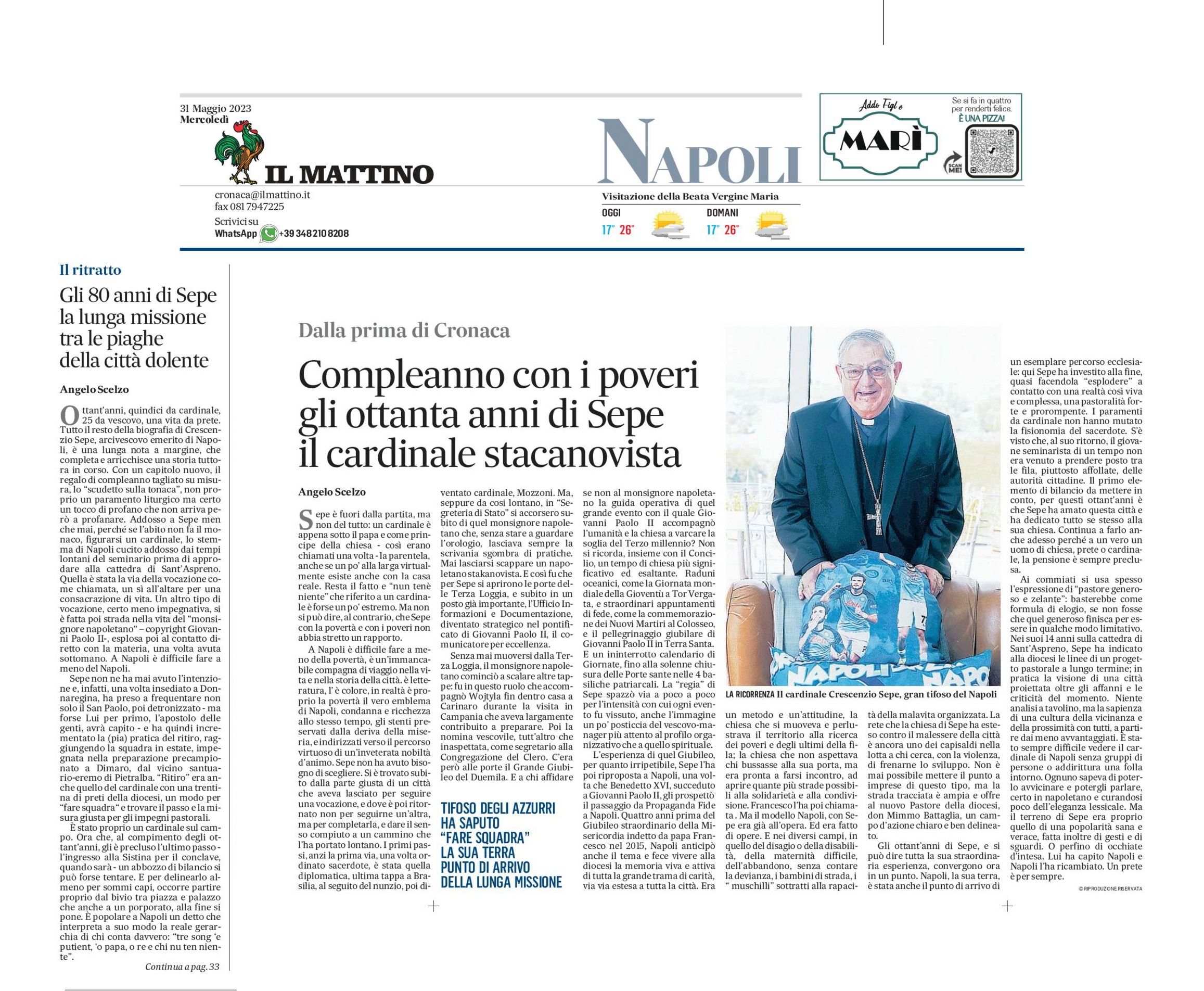 Gli 80 anni di Sepe, la lunga missione tra le piaghe della città dolente Scritto da Angelo Scelzo il 31/05/2023. Pubblicato in Il Mattino. Nessun commento su Gli 80 anni di Sepe, la lunga missione tra le piaghe della città dolente Continua a leggere