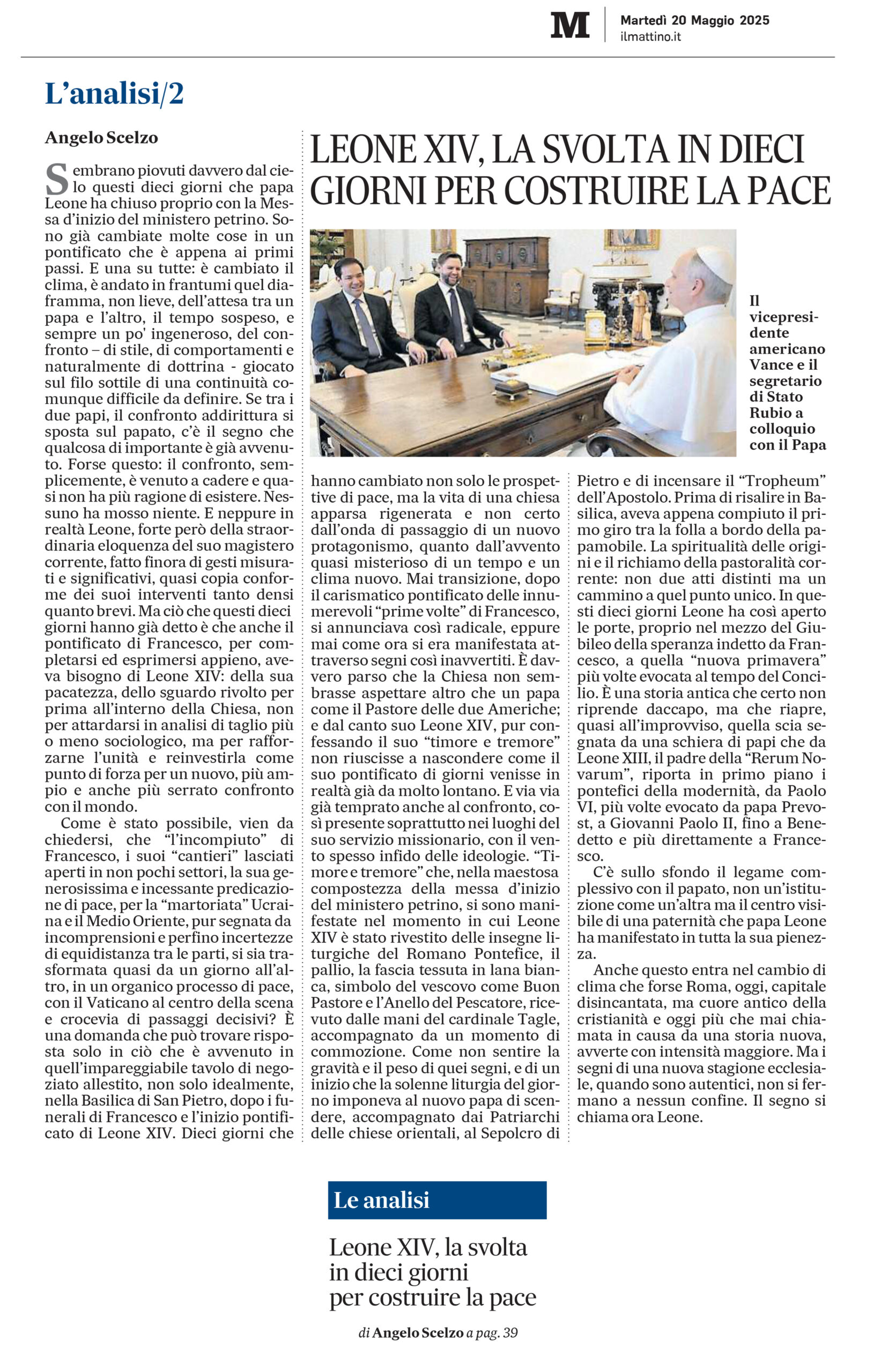 Se la pace è il “titolo di testa” di questo inizio pontificato