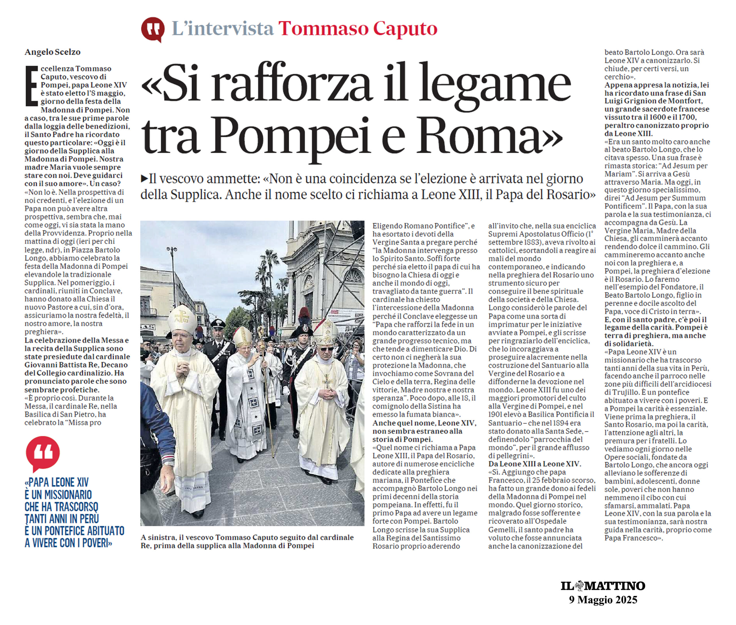 “Si rafforza il legame tra Pompei e Roma”. Intervista all’Arcivescovo di Pompei, Monsignor Tommaso Caputo, sull’elezione di Papa Leone XIV