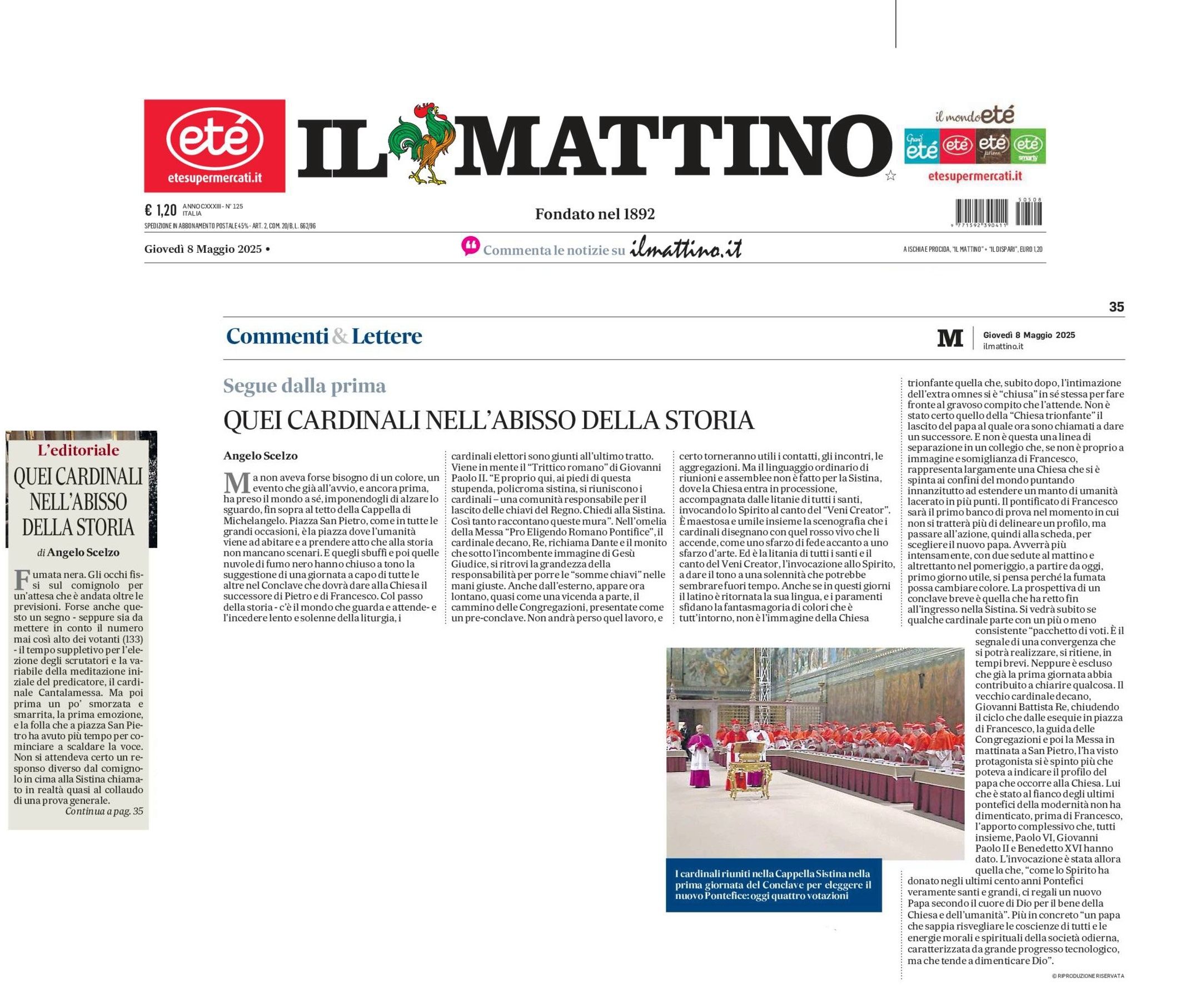 Scritto da Angelo Scelzo il . Pubblicato in Il Mattino. Nessun commento su Quei cardinali nell’abisso della storia