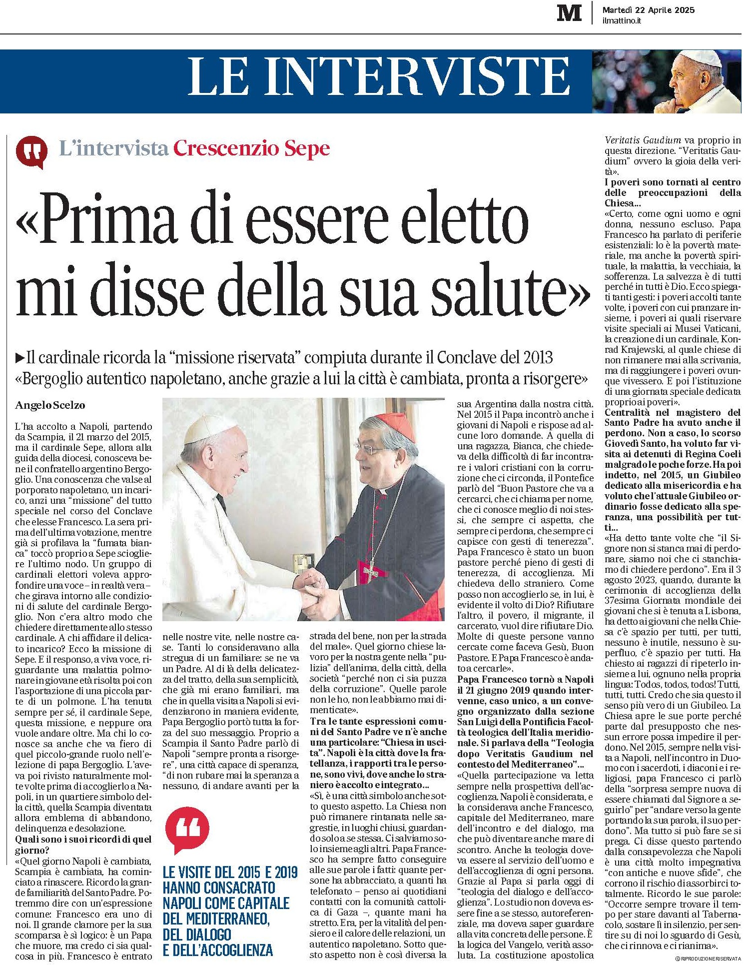 “Prima di essere eletto, mi disse della sua salute”. Intervista al Cardinale Crescenzio Sepe sulla morte di Papa Francesco