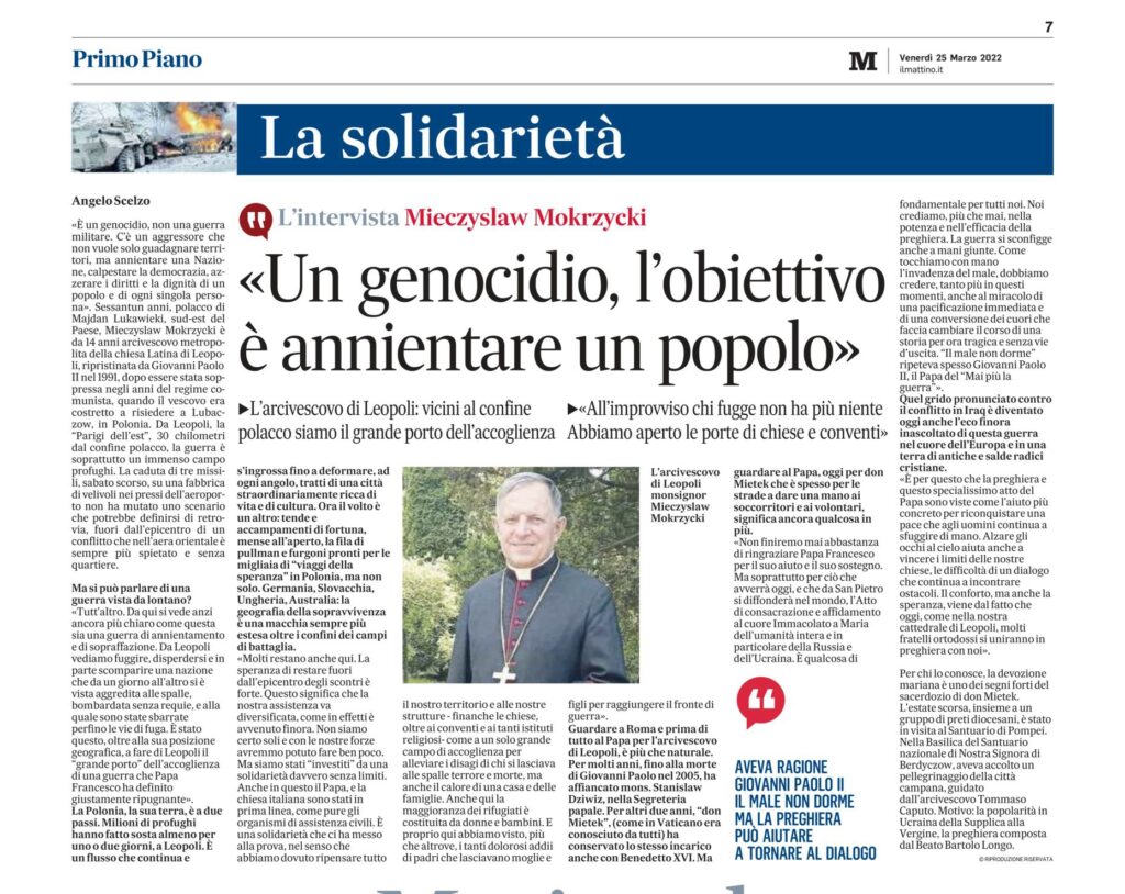 L’intervista a Monsignor Mieczyslaw Mokrzycki, Arcivescovo metropolita della chiesa Latina di Leopoli