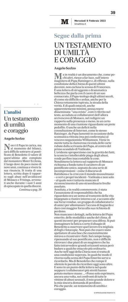 Un testamento di umiltà e coraggio